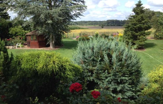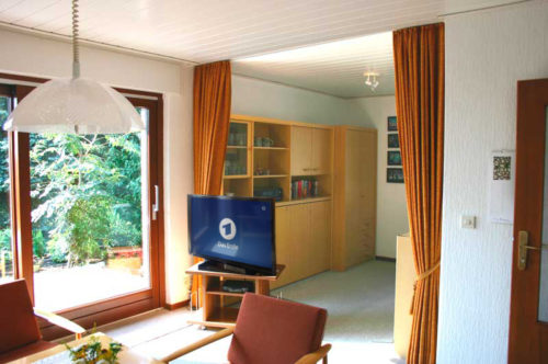 Unsere Gäste, die teilweise schon seit Jahrzehnten zu uns kommen, schätzen an der Wohnung den herrlichen Weitblick vom hellen, freundlichen Wohnzimmer und der dazugehörigen Terrasse über den großen gepflegten Garten und die sich anschließenden Felder bis hin zum Waldesrand. Aus dem Garten können Früchte und Gemüse der Saison gerne verzehrt werden.
